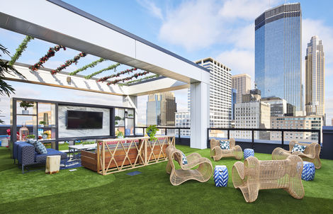 CCA Minneapolis comes equipped with an authentic Minnesota Cabin inspired rooftop clubroom, a resort style outdoor pool deck, a boutique lobby, a business center, fitness center and theater room. Able to resonate with a diverse clientele by accommodating a variety of tastes, the project is composed of eclectic and vibrant finishes, materials, and textures. The lobby is adjacent to an outdoor restaurant courtyard and new microbrewery which is open to the public, with a media wall encouraging and inviting people inwards. On the rooftop Skyclub and Skypark pool area, the spaces are themed around a “Minnesota cabin in the sky” concept.